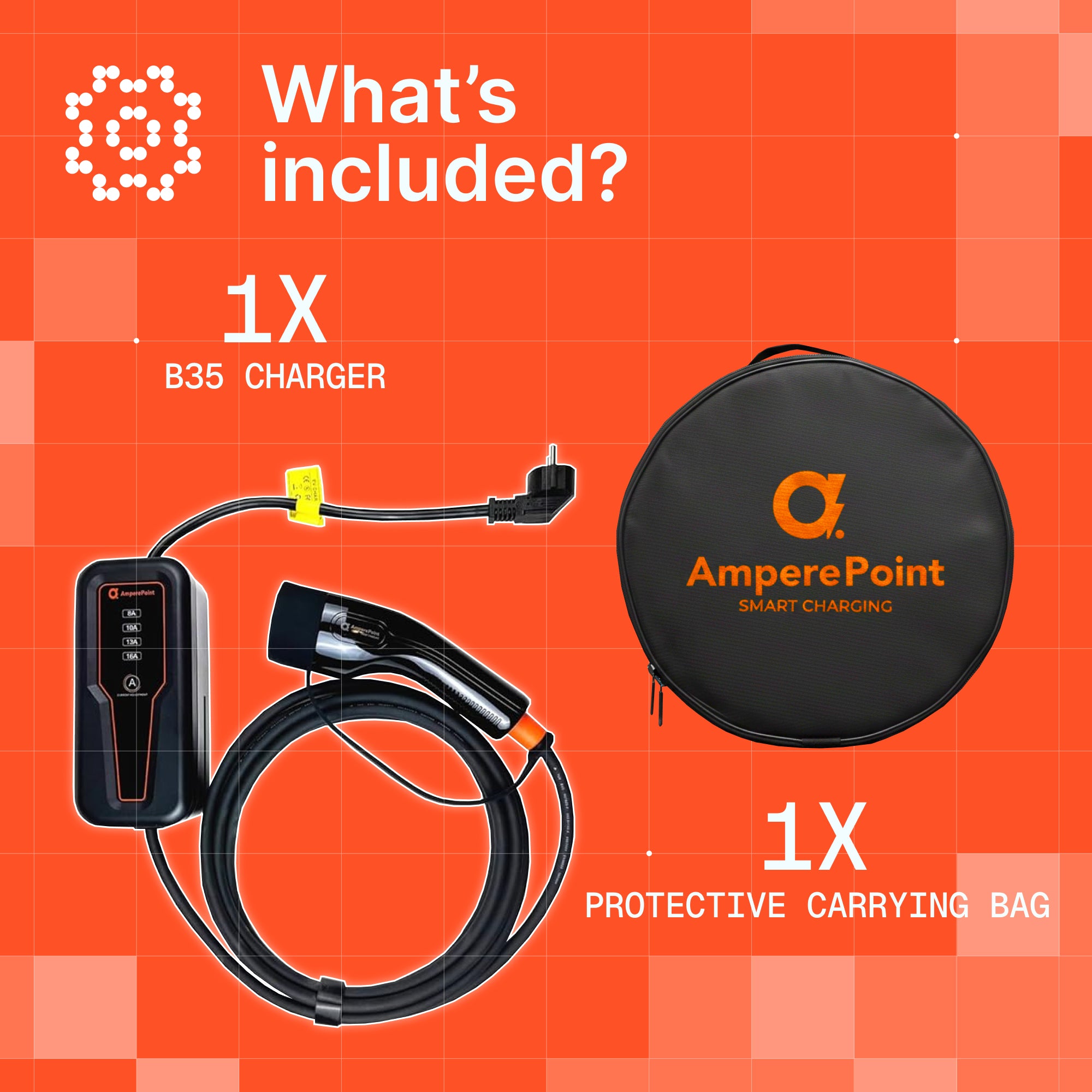 Moderne, fiable, mobile, et le système de charge le plus rapide possible utilisant une prise électrique standard, vous permettant de recharger votre VE/VHR où que vous soyez. Plus de mauvaises surprises sur la route – c’est ce que vous offre le chargeur Amper Point B35.