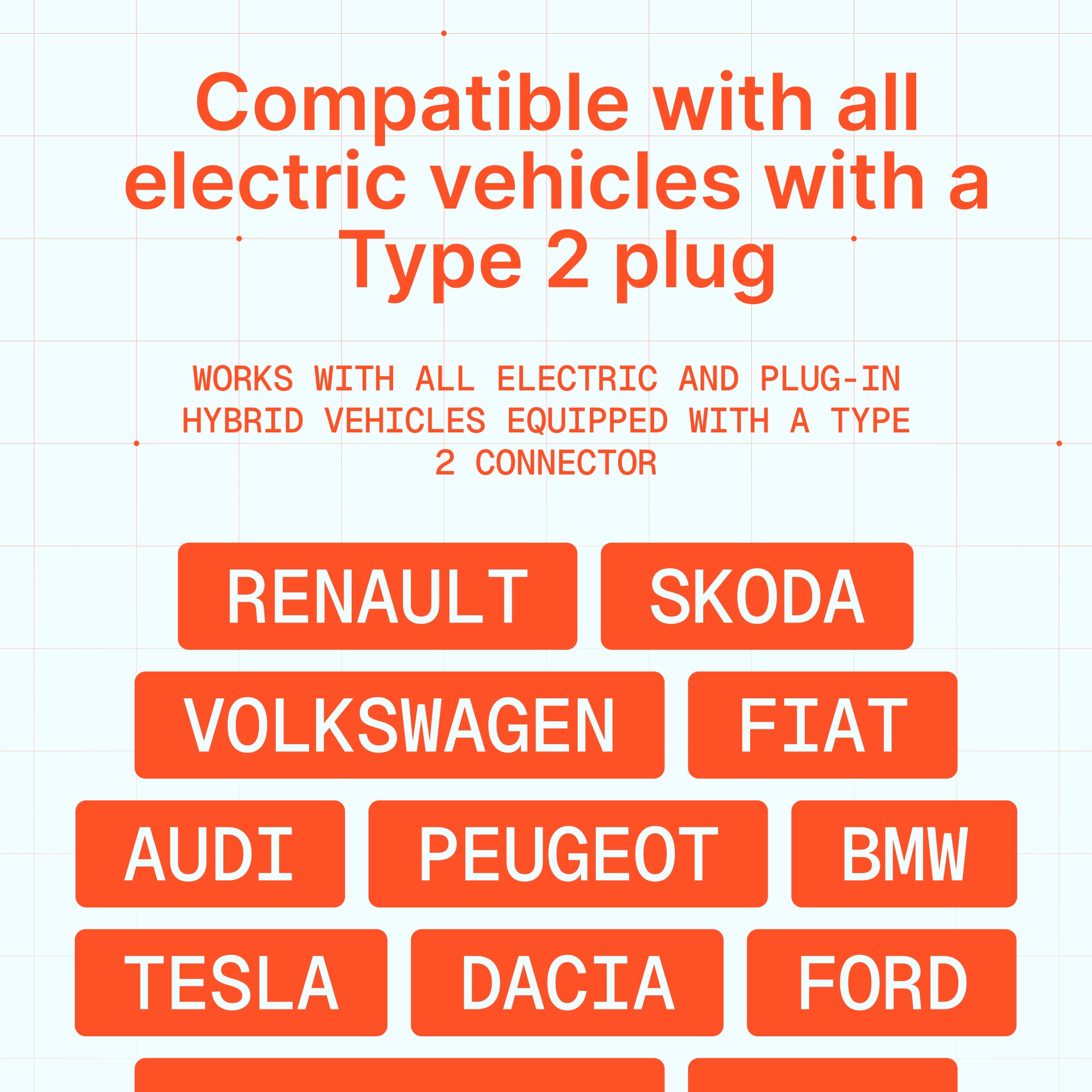 Performance de charge maximale et commodité – le câble Type 2 intégré et le chargeur 3,7 kW (1 x 230 V x 16 A) garantissent la charge la plus rapide et la plus efficace de votre véhicule en utilisant une prise réseau standard 230 V.